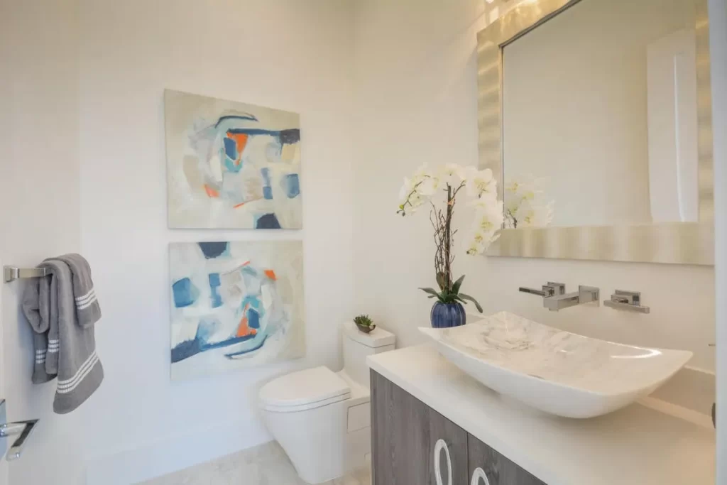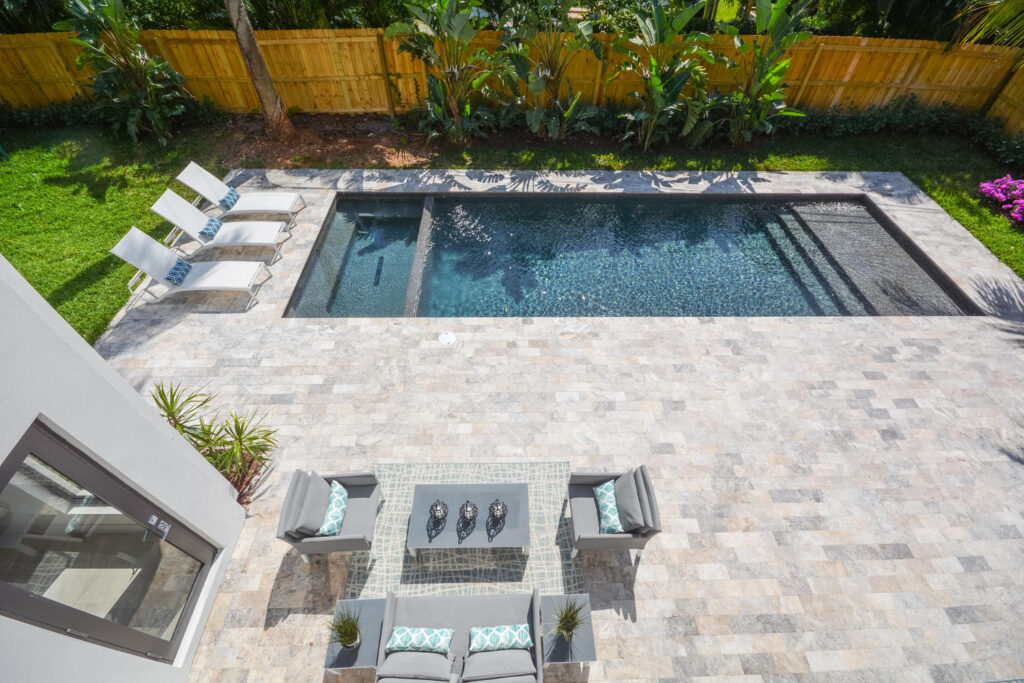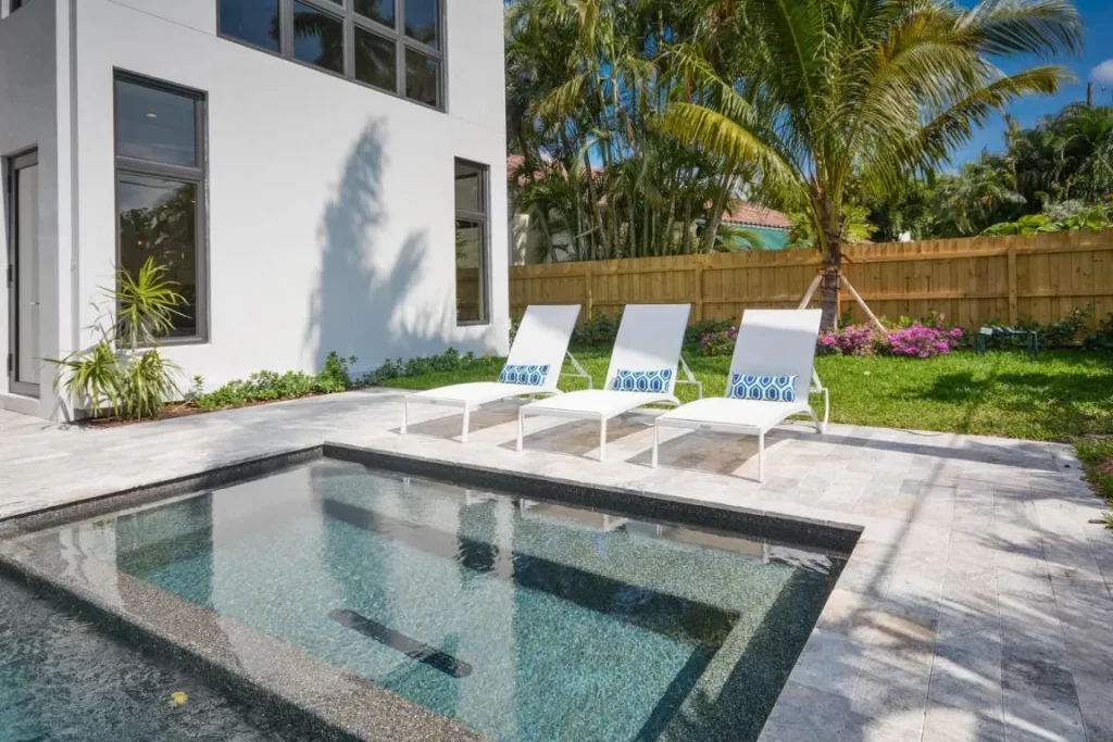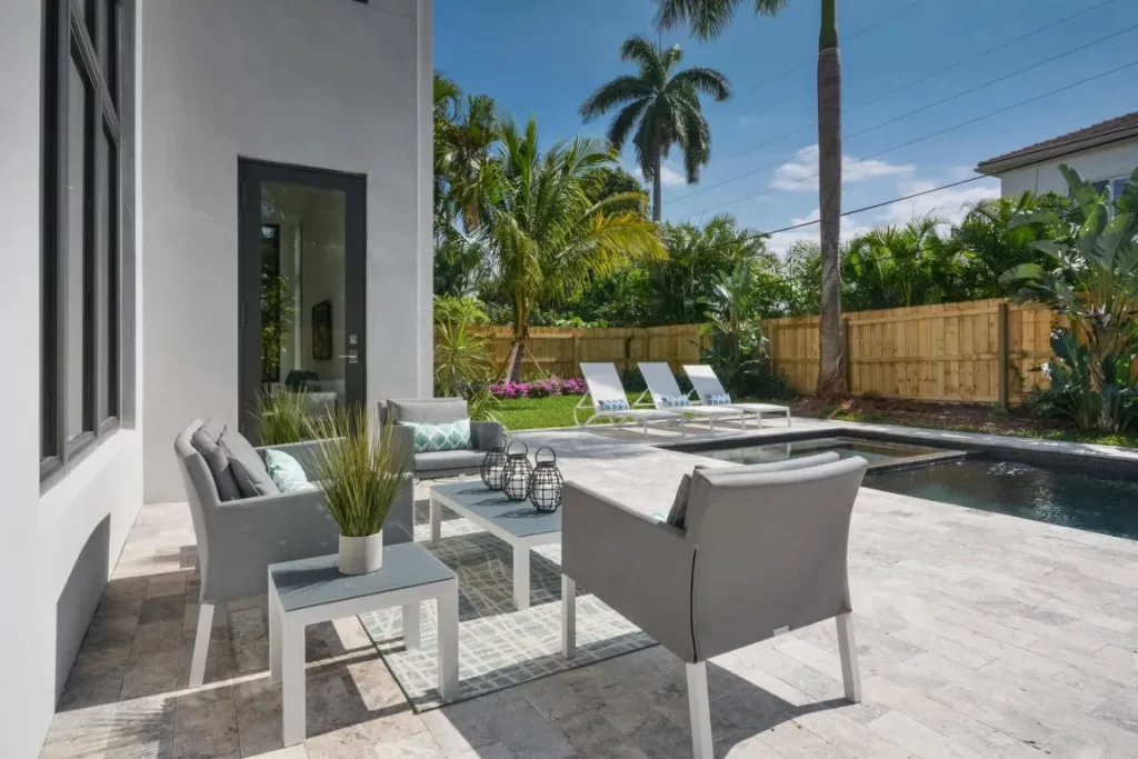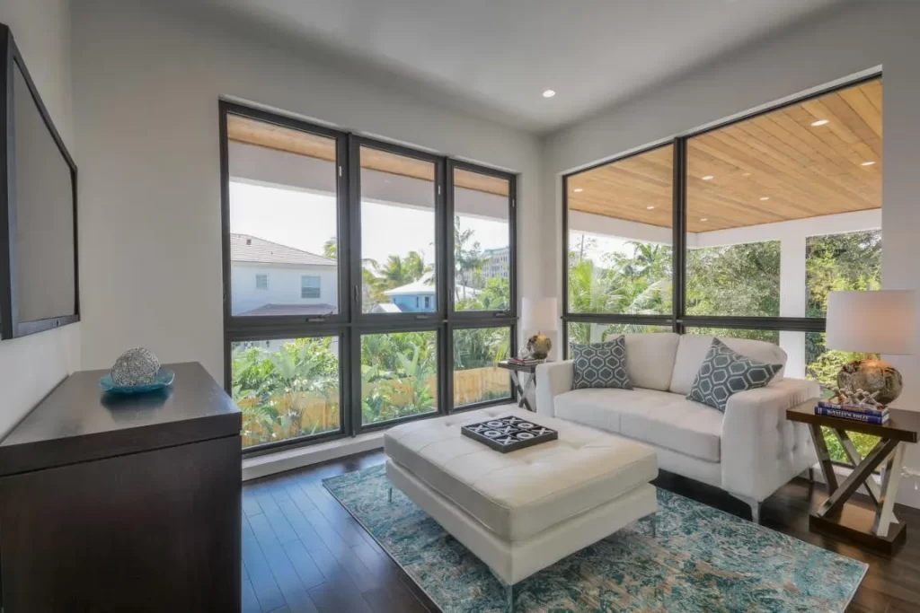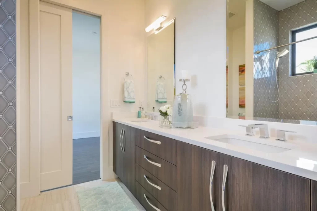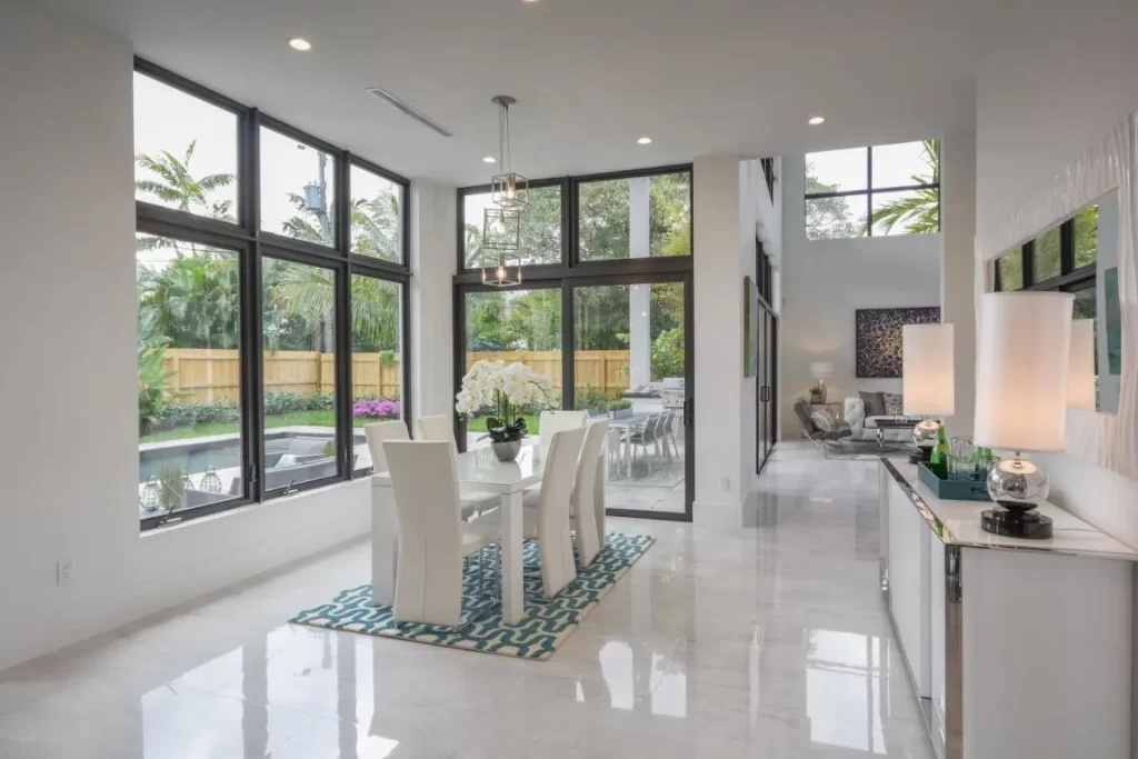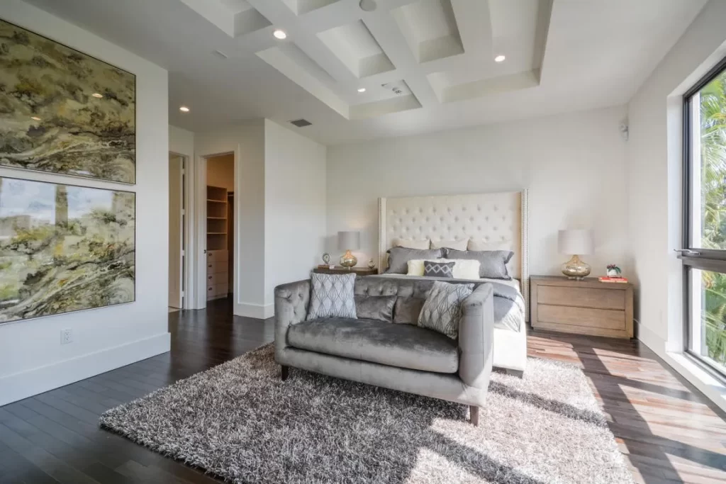 The Contemporary two story home is located in Boca Raton has 5 bedrooms, 4.5bathrooms and many other amenities. The kitchen is equipped with an island bar, pantry, and top of the line appliances made by Wolf and Subzero. Throughout the entire home, you can find high ceilings accompanied by an office, a summer kitchen, a living room, pool and a spa.