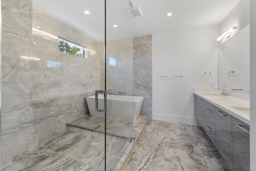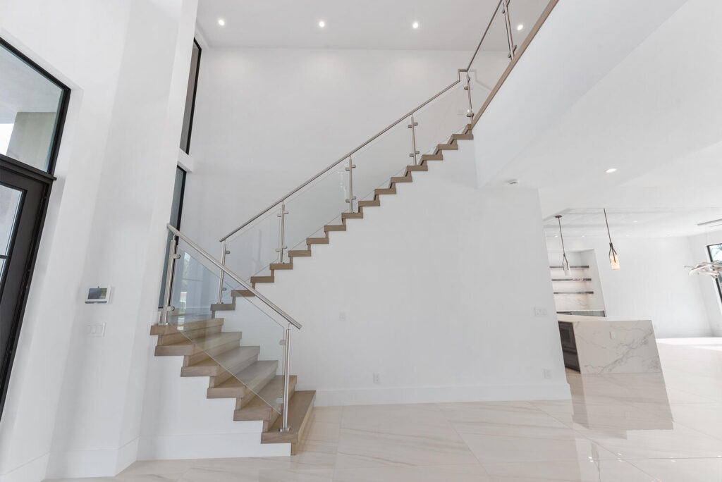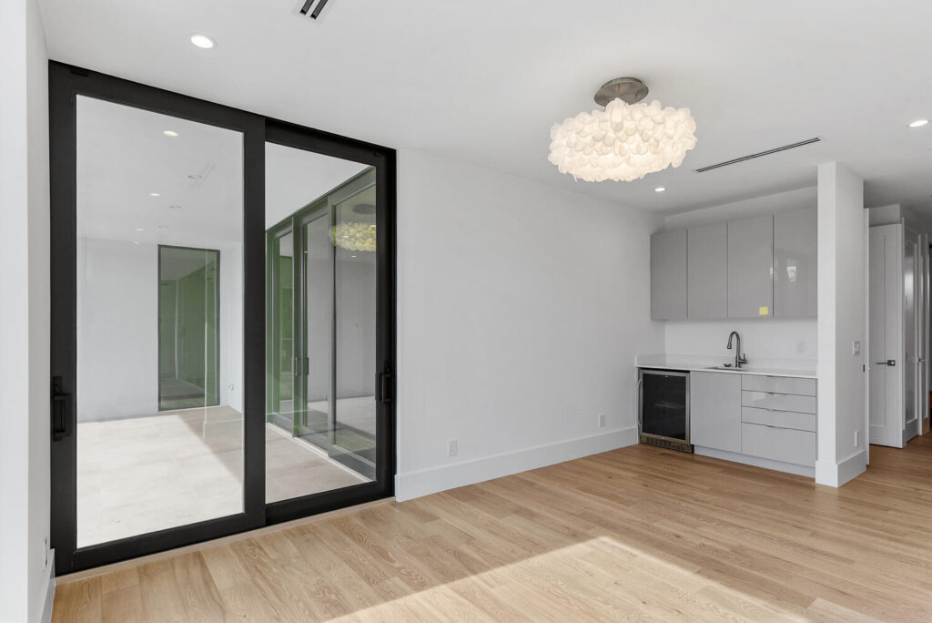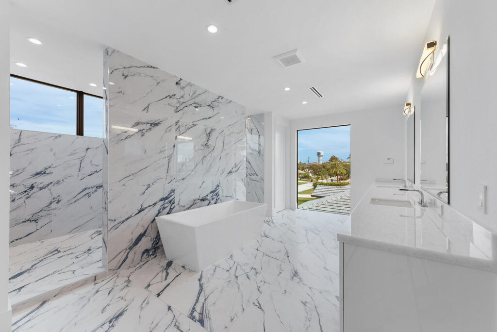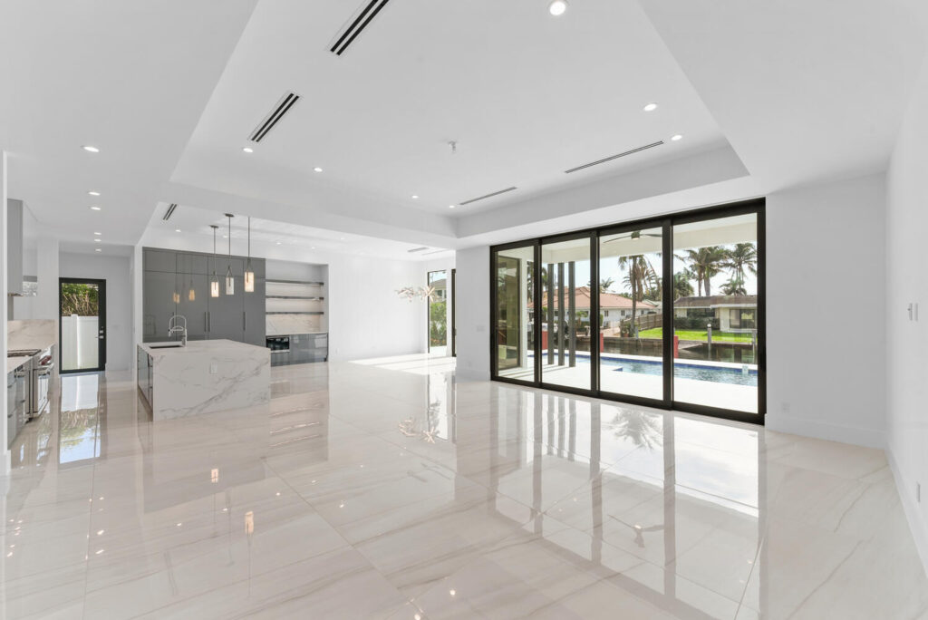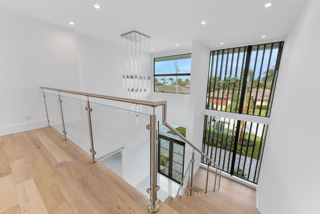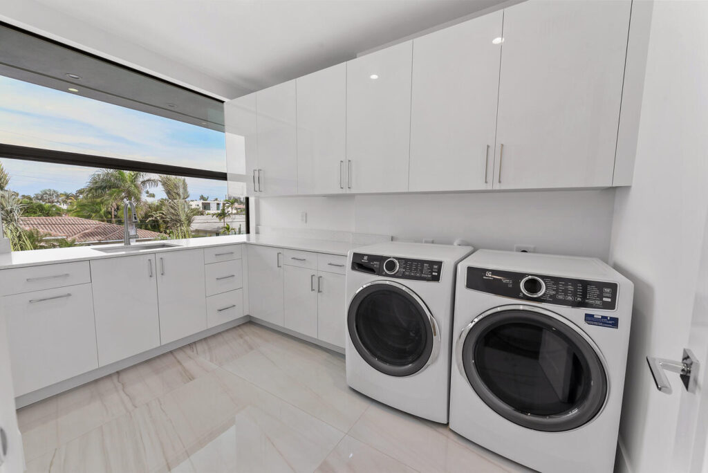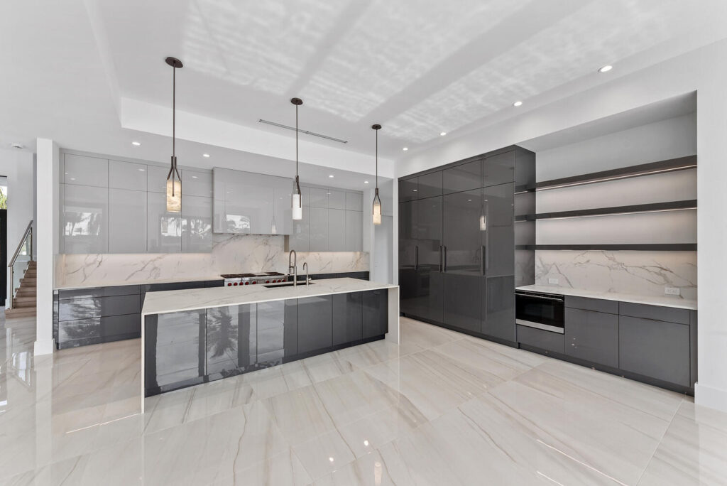 Berkeley Waterfront’s unique design boasts 3 garages, 4 bedrooms, 5.5 bathrooms, office, viewing room, and a second-floor terrace. The state-of-the-art kitchen has an abundance of storage, appliances of the highest quality, and an island with bar top seating. The floor-to-ceiling windows makes the home’s contemporary design even more extravagant as it shows off the gorgeous views of this deepwater location connected to the intracoastal waterway. The grand entrance with soaring ceilings is luring to the upstairs secondary living room and master suits. The private covered loggia offers a summer kitchen, pool, spa and boat dock.
