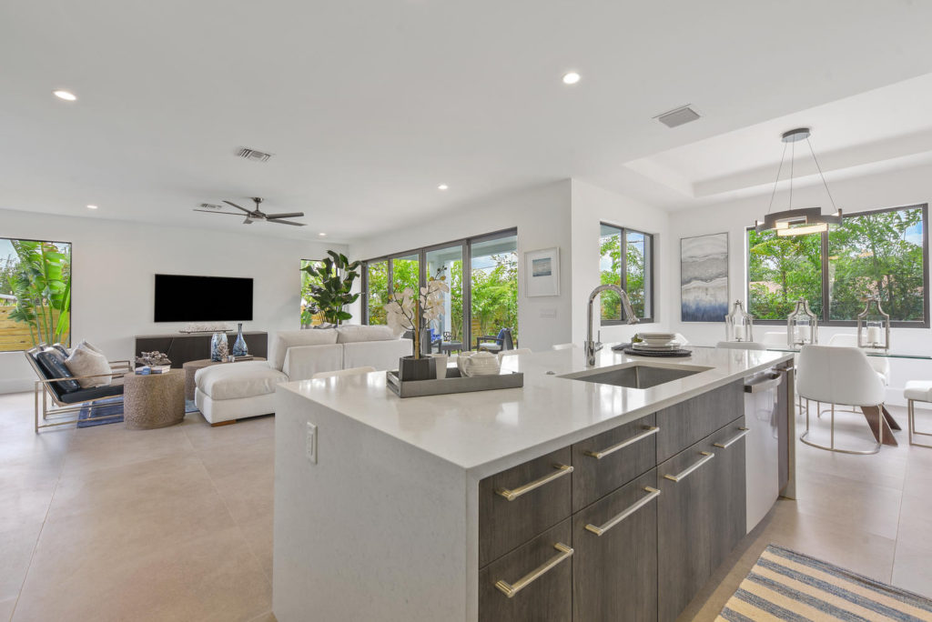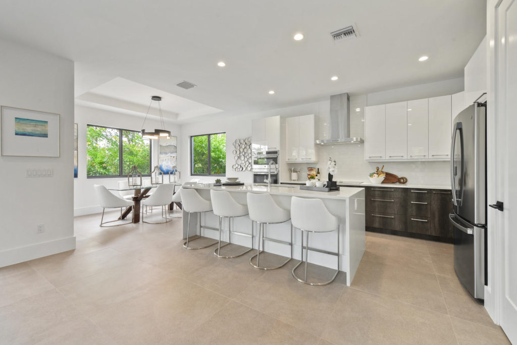 The home is a few blocks away from Atlantic Ave where you can find a number of restaurants, bars, and the best public beach in Delray. Inside the home, you can find your own tropical paradise. There are 4 bedrooms, 3.5 baths, a pool, and state of the art appliances. The house is designed with an open floor plan, high ceiling, and tall windows allowing for the serenity from outside to flood in illuminating the rooms. The kitchen has a center island that is open to the living room and dining room making it easy to entertain large parties and have intimate family dinners.