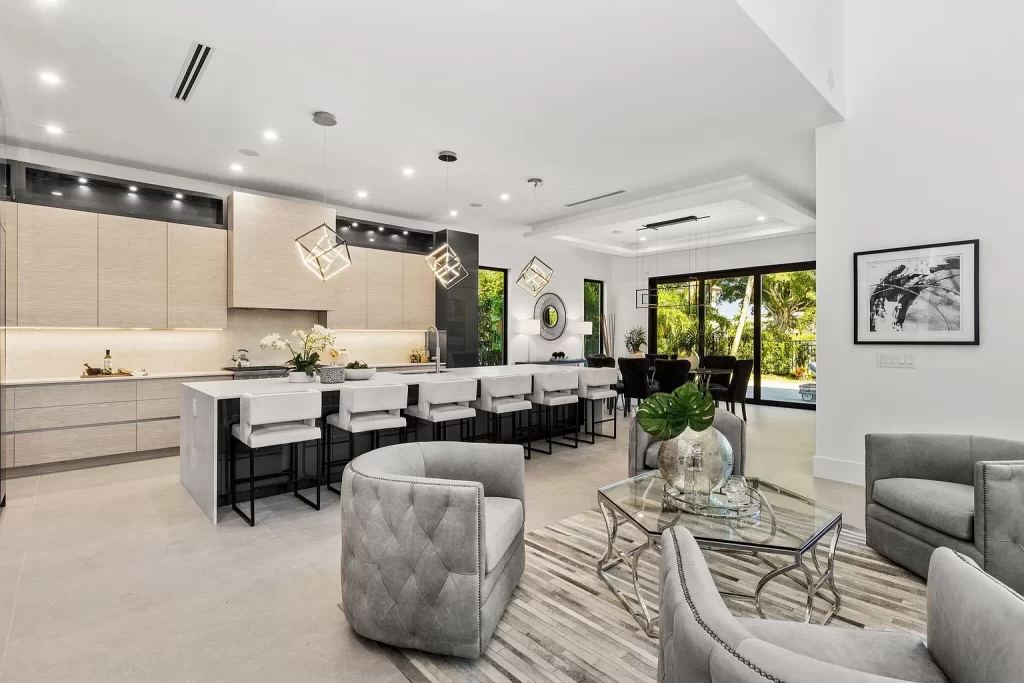 Paddington Paradise, nestled in Boca Raton, stands as a capacious and opulent two-story residence boasting five bedrooms, five bathrooms, living room, office space, and more! The kitchen features a spacious central island, high-quality appliances, and an abundance of cabinet storage. The residence’s appeal is elevated by the enchanting summer kitchen, complemented by a rejuvenating pool and an inviting spa.