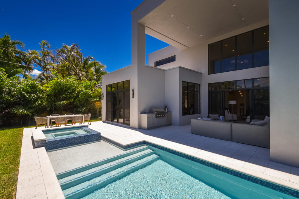 Walking into the seaside contemporary home you will find 5 bedrooms, 6 1/2 bathrooms a saltwater pool & spa, a summer kitchen, and open spaces. The living spaces are designed to fulfill your needs and everyday life and for any special occasion. The tall ceilings, open design, and large window facing the backyard allow an ample amount of sunlight to enter the home without giving up privacy. With the beach being only three blocks away the tropical landscaping, luxury pool and tall windows will make it feel like you have your own slice of paradise.